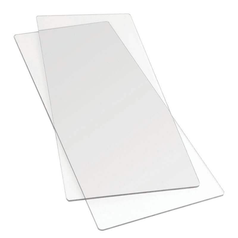 Wykrojniki lub foldery układamy między przezroczystymi płytkami – Cutting pads. Dzięki temu że są przezroczyste możemy sobie ustawić odpowiednio wykrojniki i papier i widzimy jak to wygląda.